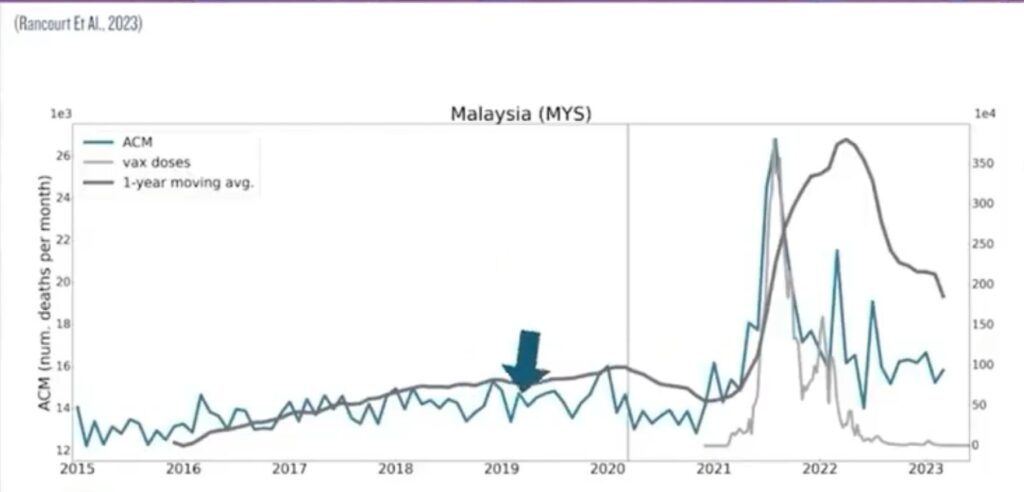 As you can see in the above graph, the Deaths/Month in Malaysia rose sharply in 2021, when most people were vaccinated – the death rate & vax rate peaked together.