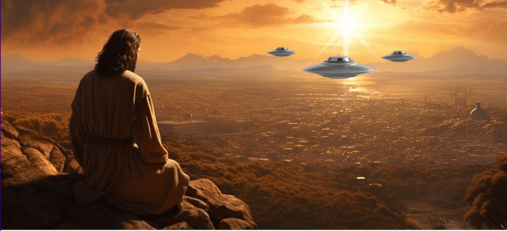 Thus they spoke, the celestial sons between the North and the West, before bringing Jmmanuel in the brazen (metallic), singing (whirring) light (extraterrestrial beamship of the Plejaren) back to the land of the god-believers, to the land of Galilee.